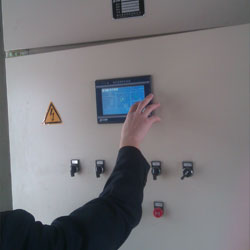 該項(xiàng)目為泵房改造項(xiàng)目,系統(tǒng)流量600m3/h,揚(yáng)程118m,采用南方泵業(yè)5臺不銹鋼多級立式離心泵并聯(lián)組成的DRL120-60-1成套變頻供水設(shè)備。泵組過流部件均采用SUS304不銹鋼材質(zhì),泵出水口均加裝軟接,設(shè)備出口端加裝了DN300電磁流量計(jì)直接讀取出水流量,并采用數(shù)據(jù)線將電磁流量計(jì)數(shù)據(jù)傳輸至PLC直接顯示在屏幕上,因高爾夫球場草坪的噴淋瞬間流量變化比較大,同時對不同天氣不同時段噴水的量要求精度較高,這樣能使用戶更直觀的監(jiān)控到瞬間用水量及累積用水量。