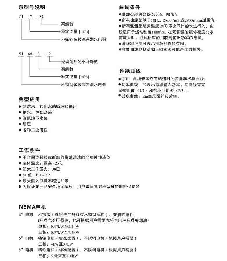 南方SJ不銹鋼多級深井潛水電泵配用潛水電機,替代傳統長軸式聯接的深井泵,泵內裝有止回閥,以防止停機逆流及管路水錘對泵的沖擊。